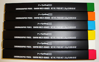 Lips - I am a bit slow on the uptake of the mac ranges so I believe these are a pro product that was released a long long time ago! Chromographic pencils?? I want all of them but I only picked up one which was on a kit list for a make up artists show. I am loving the bright lip at the moment so the one that I picked up was process magenta has been transferred to my personal make up bag on various occasions!